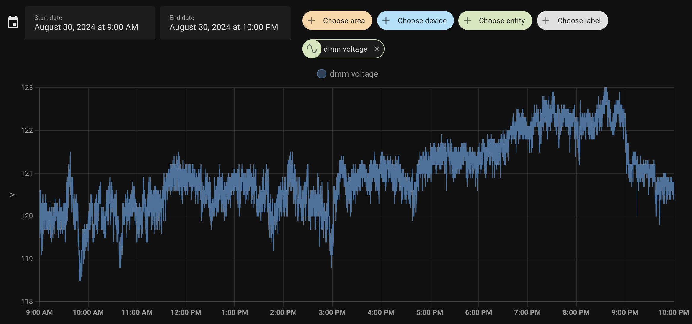 I decided to log voltages on a few circuits in my house and figured I would start with outlets prior to specific lighting fixtures to establish a baseline. I have some smart outlets that report voltage, but the sample rate is not really controllable and some of these voltage events seemed very short.