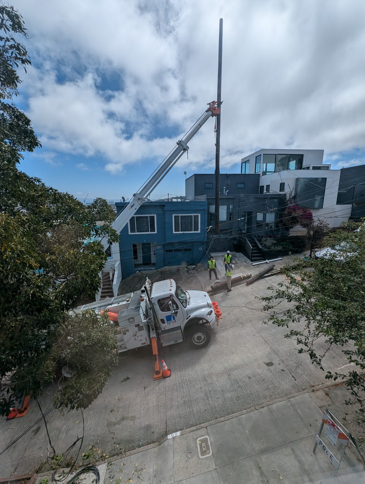 First they replaced a few poles on the street and moved over all of the communication wires: